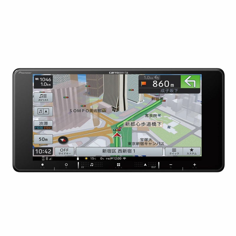 HD解像度フル対応により、地図だけでなく映像ソースまで高画質の画面表示を実現。「信号機カウント交差点案内」を搭載している。