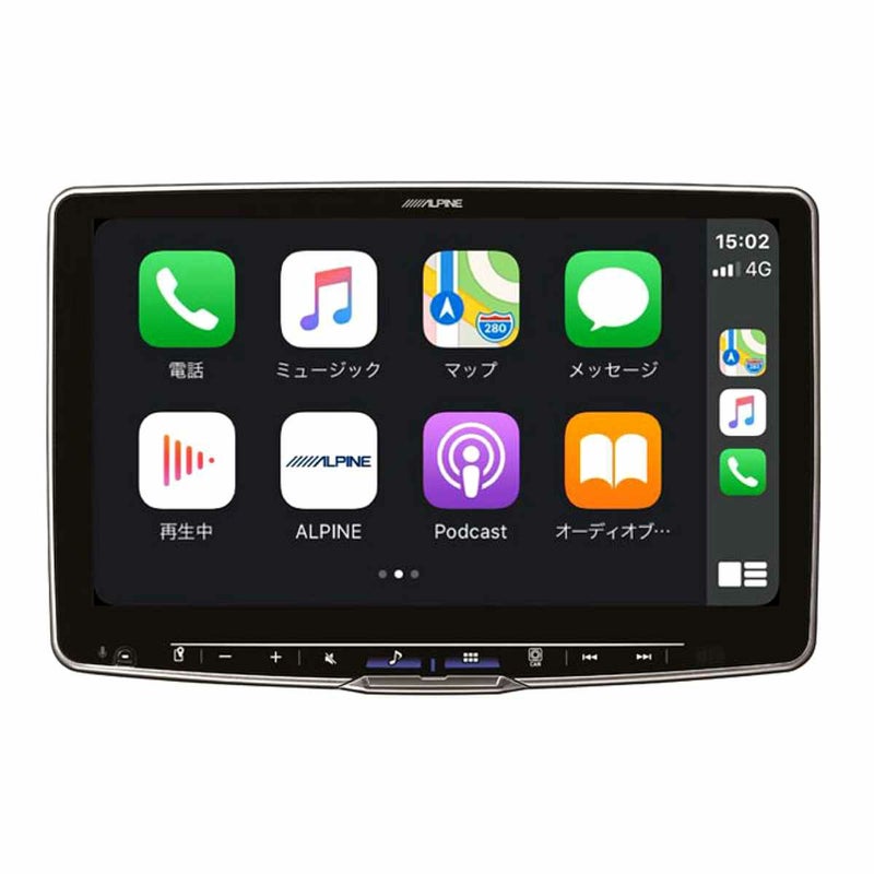 Apple CarPlay / Android Autoに対応。HDMI入出力 / AUX入力 / アルパインダイレクト接続に対応し、スマホアプリの動画を楽しめる他に幅広いシステムアップが可能。