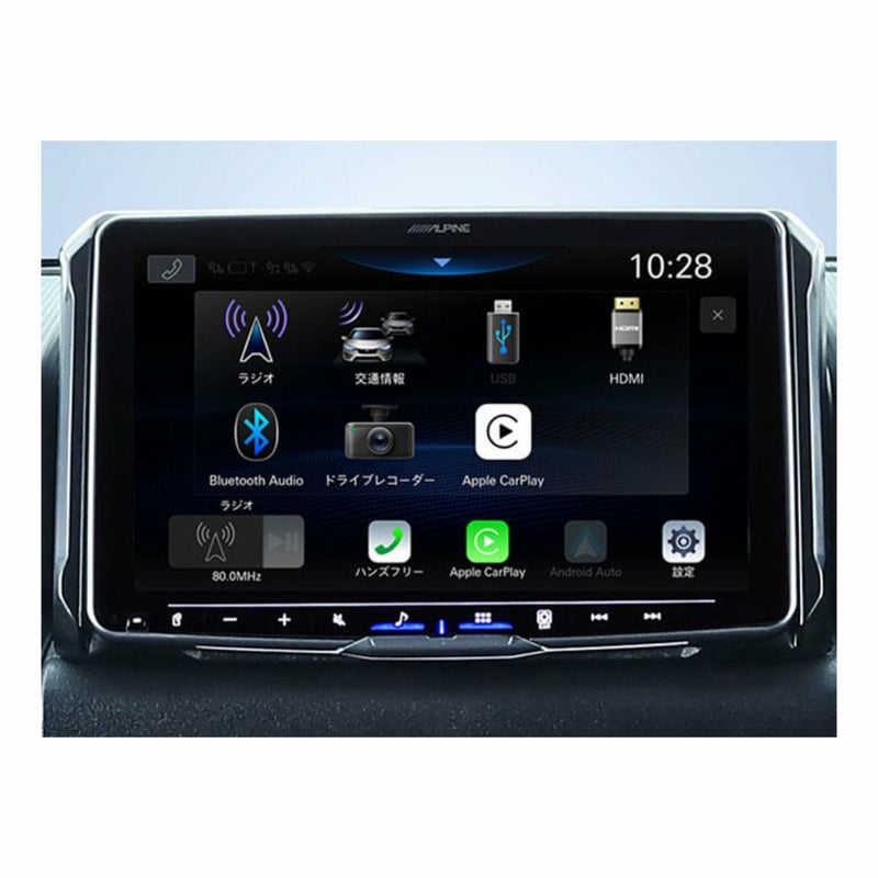 Apple CarPlay / Android Autoに対応。HDMI入出力 / AUX入力 / アルパインダイレクト接続に対応し、スマホアプリの動画を楽しめる他に幅広いシステムアップが可能。