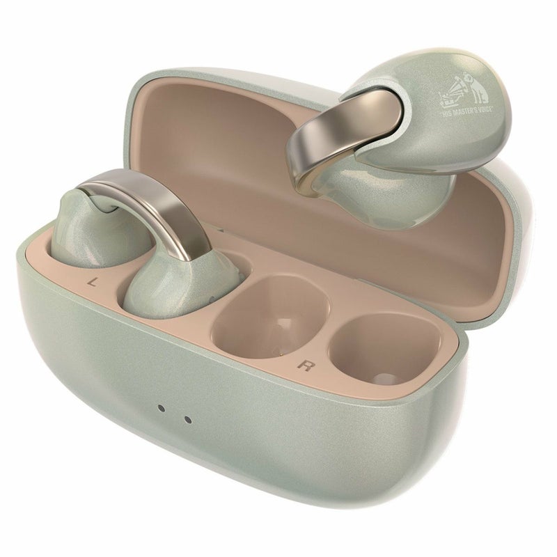 耳をふさがないイヤーカフタイプの完全ワイヤレスイヤホン。装着しやすいフレキシブルアジャストで、軽く快適な着け心地。